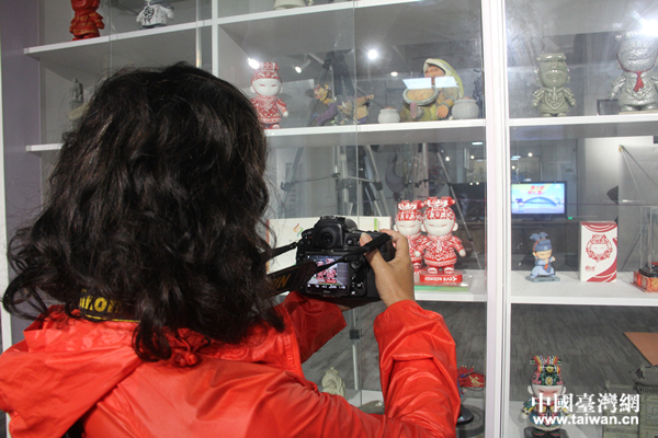 臺(tái)灣攝影家交流協(xié)會(huì)干部洪秋如拍攝文創(chuàng)產(chǎn)品秦親寶貝。(中國臺(tái)灣網(wǎng) 王亞靜 攝)