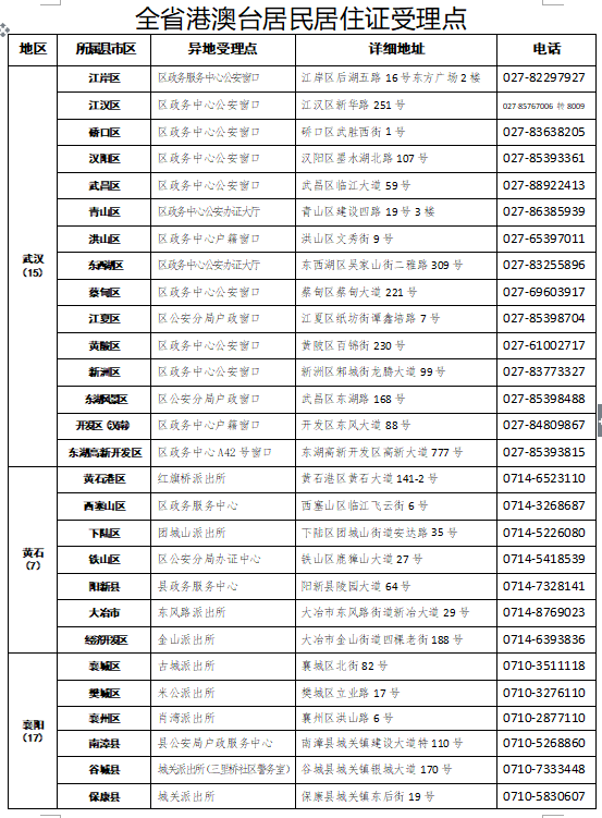 9月1日起,湖北168個受理點可辦理港澳臺居民居住證