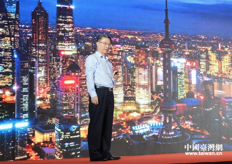 臺北市副市長蔡炳坤作主題演講。(圖片來源:上海市臺辦)