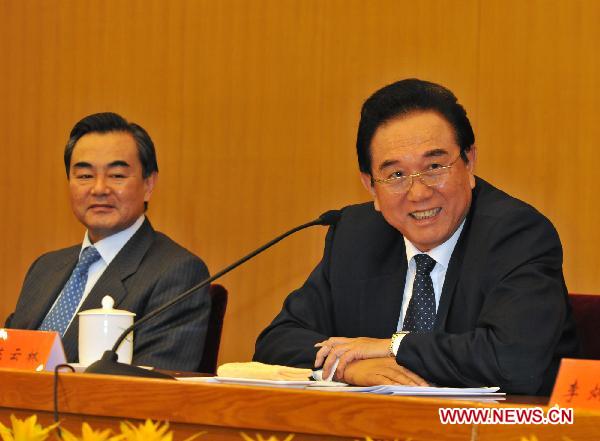 Chen Yunlin (R), president of the Chinese mainland's Association for Relations Across the Taiwan Straits (ARATS), addresses the third session of the second council of the ARATS in Beijing, capital of China, Jan. 28, 2011. (Xinhua/He Junchang)