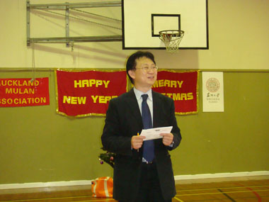 黎副總在致辭中祝與會人員圣誕、新年快樂,表示很高興參加此次聯(lián)誼活動。這次活動是由四個團體共同舉辦的,體現(xiàn)了奧克蘭和諧僑社建設取得了新成績,希望華僑華人社團多共同舉辦此類慶祝活動,展現(xiàn)華僑華人的精神風貌。他還介紹了今年中國經(jīng)濟社會發(fā)展情況,特別是上海世博會、廣州亞運會和國家“十二五規(guī)劃”等情況。