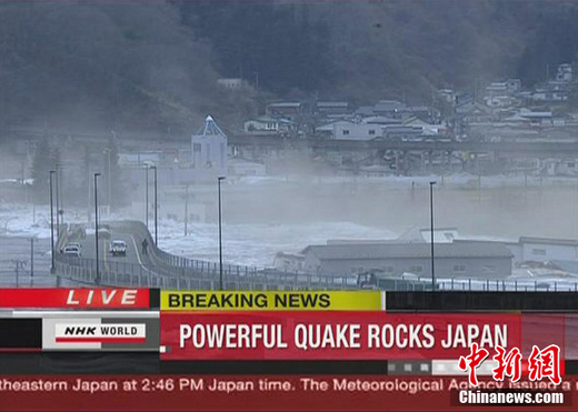 日本近海3月11日發生了強烈地震,首都東京震感強烈。日本氣象廳隨即發布了海嘯警報,稱地震將引發約6米高海嘯。圖為NHK電視臺截圖顯示青森縣八戶市港口的貨船被海嘯掀翻。