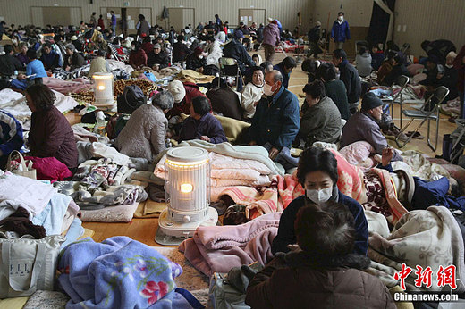 3月15日,日本9.0級(jí)大地震和海嘯發(fā)生后。日本巖手縣難民躲到避難場(chǎng)所。