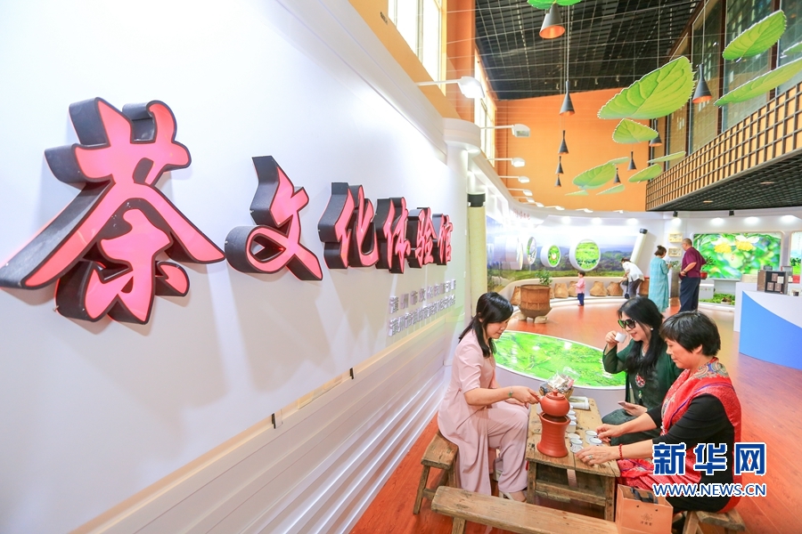 6月14日,在茶文化體驗館,一名客商正在品茶。新華網 肖和勇 攝