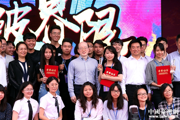 中共中央臺(tái)辦、國(guó)務(wù)院臺(tái)辦主任劉結(jié)一與參賽團(tuán)隊(duì)合影留念。(中國(guó)臺(tái)灣網(wǎng) 尹賽楠 攝)