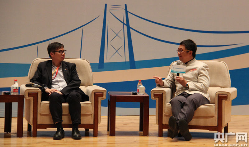 被稱(chēng)作“臺(tái)版papi醬”的網(wǎng)絡(luò)紅人侯漢廷,17日參加在廈門(mén)舉辦的海峽青年論壇主旨論壇,吸引了眾多大陸粉絲圍觀。他接受中新網(wǎng)記者采訪時(shí)指出,甘當(dāng)兩岸交流的“網(wǎng)紅”。