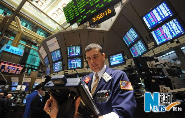 5月6日,交易員在美國紐約證券交易所內工作。當日,在歐洲債務危機的重壓下,紐約股市暴跌,截至收盤,三大股指的跌幅均超過3%,而道瓊斯指數盤中瞬間曾一度下跌將近1000點,是歷史上單日下跌點數最多的一次。新華社記者申宏攝