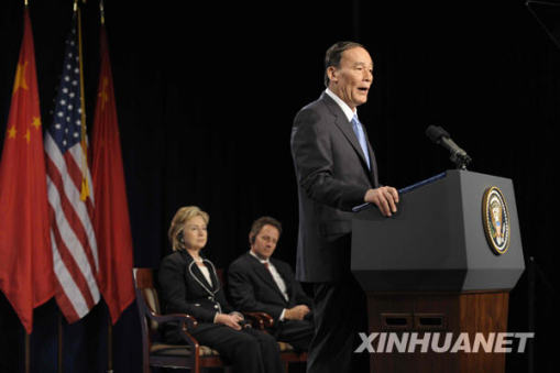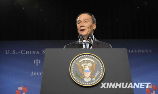 7月27日,中國國家主席胡錦濤特別代表、國務院副總理王岐山在首輪中美戰略與經濟對話開幕式上講話。當日,首輪中美戰略與經濟對話在美國華盛頓開幕。新華社記者張巖攝