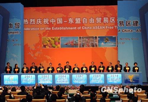 二0一0年一月七日,對于十三億中國人和六億東盟國家的民眾來說,將是一個被寫入雙邊交往史的日子——這一天,東盟和中國在廣西南寧市共同舉辦了中國—東盟自貿(mào)區(qū)建成儀式。