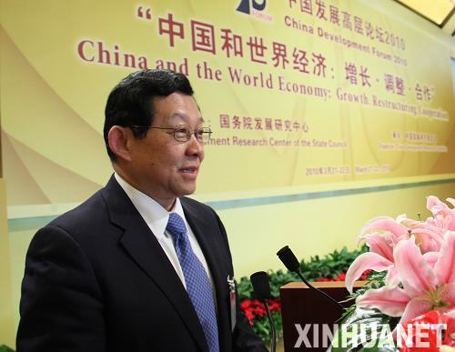 3月21日,商務部部長陳德銘在發表演講。 當日,由國務院發展研究中心主辦的中國發展高層論壇2010年會開幕式在北京舉行。本屆年會主題為“中國與世界經濟:增長·調整·合作”。新華社記者 邢廣利 攝