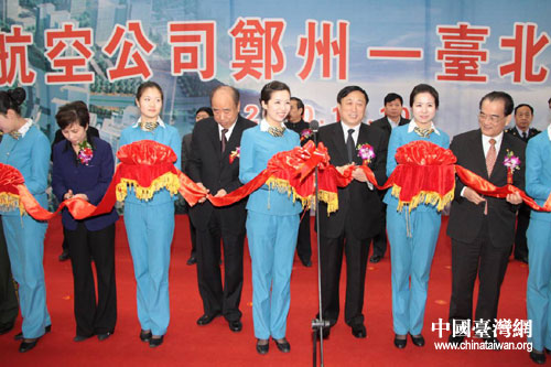 鄭州機場為鄭州—桃園航線舉行了首航儀式,河南省副省長張大衛出席儀式并宣布航線開通,省政府副秘書長、新鄭國際機場管理公司總經理岳文海,省臺辦主任宋麗萍,省發改委、商務廳、旅游局、鄭州海關等相關單位負責人出席了首航儀式。