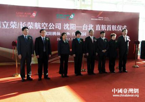 中國臺灣網12月19日沈陽消息 日前,臺灣立榮—長榮航空開通沈陽—臺北航線。遼寧省機場管理集團公司于沈陽桃仙國際機場舉辦歡迎儀式及首航儀式。