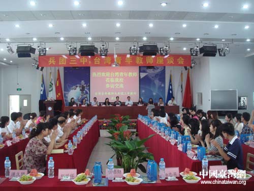 臺灣青年教師參訪團與新疆兵團三中教師交流座談。(圖片來源:新疆生產建設兵團臺辦)