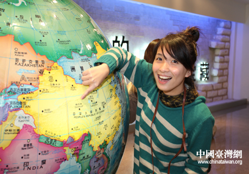 臺灣學生在察爾汗鹽湖展館留影(圖片來源:青海省臺辦)