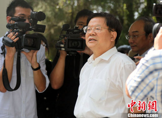 應臺灣財團法人沈春池文教基金會邀請,中華文化聯誼會名譽會長蔡武2日率團抵達臺北訪問,訪問團一行出機場后便直奔胡適故居參觀。圖為蔡武在胡適公園瞻仰胡適先生墓。中新社記者 劉舒凌 攝