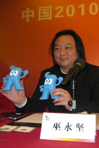 資料圖:臺灣設計師巫永堅亮相中國二0一0年上海世博會吉祥物揭曉新聞發布會 中新社發 裔蕊華 攝