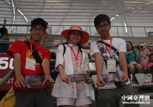 臺灣學生在鳥巢合影留念。(中國臺灣網 李瑞艷 攝)