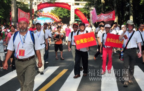 9月26日晨,2009年全國登山健身大會暨福建·福州第三屆“中國體彩杯”海峽兩岸萬人登山活動在福建福州鼓山風(fēng)景區(qū)舉行。來自海峽兩岸的登山愛好者、各屆民眾近十萬人參加了今天的活動,其中臺北山岳協(xié)會組隊(duì)臺灣登山隊(duì)參加活動。 (作者:張麗君)