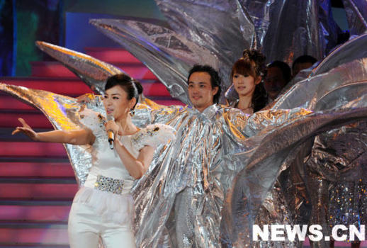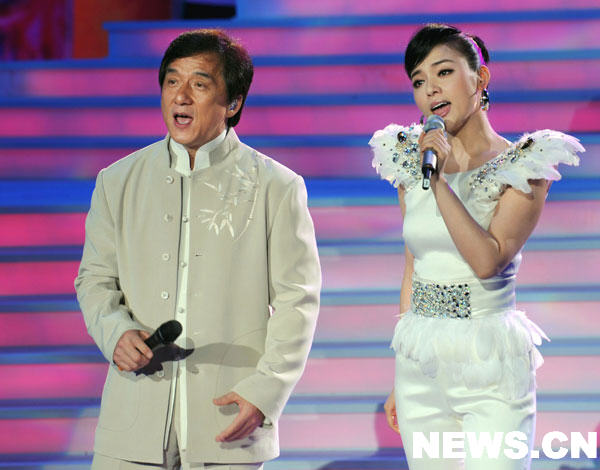 10月31日,陳思思(右)與成龍在演唱會上表演。