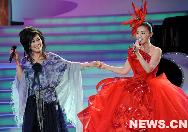 10月31日,陳思思(右)與歌手齊豫在演唱會上表演。