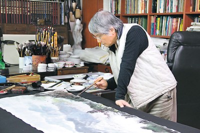 對于他與大陸畫家即將合展的《新富春山居圖》,江明賢評價(jià):“這是一次中國畫的傳承,長卷、水墨都是中國畫所特有的;這也是一次創(chuàng)新,因?yàn)楫嬛袕?qiáng)調(diào)了色彩和寫實(shí),點(diǎn)景的不再是牧童茅屋,傳達(dá)出富春山水當(dāng)下的美麗。”(本報(bào)記者 陳曉星 文/圖)