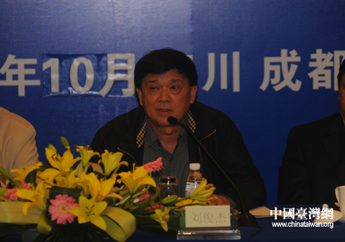 四川省臺辦主任劉俊杰主持座談會并作總結發言。(圖片來源:四川省臺辦)