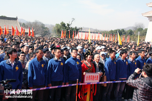 4月4日上午,壬辰年(2012)清明公祭軒轅黃帝典禮在陜西黃帝陵隆重舉行,圖為參加公祭的臺灣同胞。(中國臺灣網(wǎng) 楊麗 攝)