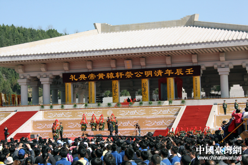 4月4日上午,壬辰年(2012)清明公祭軒轅黃帝典禮在陜西黃帝陵隆重舉行。(中國臺灣網 楊麗 攝)