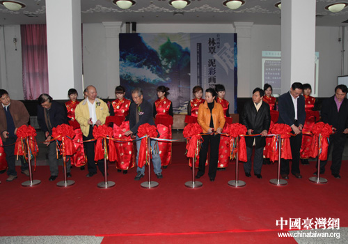 有關部門領導為林覃泥彩畫巡展剪彩(沈陽市臺辦 李雪飛 攝)