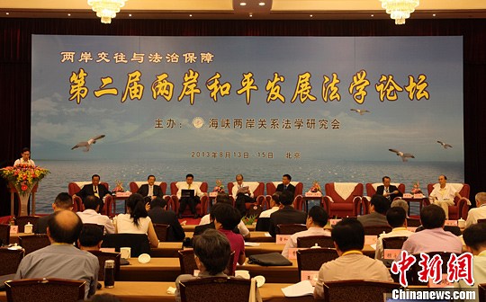 8月14日,第二屆兩岸和平發展法學論壇在北京召開。本次論壇由海峽兩岸關系法學研究會主辦,來自兩岸法學界、法律界專家學者共180余人出席論壇。中新社發 陳小愿 攝