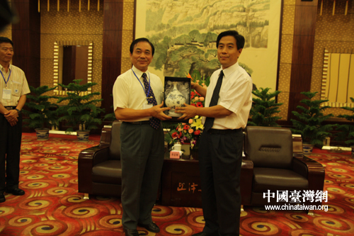 臺灣青年團向山西省委常委、秘書長高建民贈送臺灣瓷器(中國臺灣網 陳寧 攝)