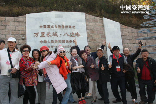 中國臺灣網10月24日天津消息 參加2012“走親戚”津臺社區大型交流活的臺灣參訪團今日來到北京,登上八達嶺長城,體驗“不到長城非好漢”的壯志豪情。
