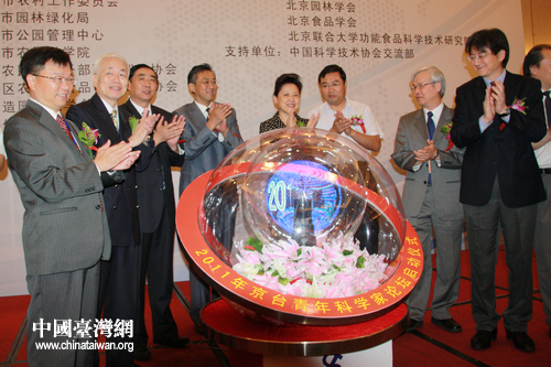 與會領導與臺灣代表啟動2011京臺青年科學家論壇(中國臺灣網 郭瑩瑩 攝)