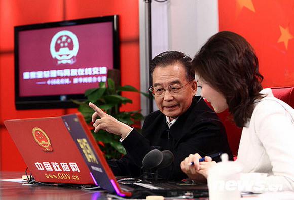 2月27日下午3時,中共中央政治局常委、國務院總理溫家寶接受中國政府網、新華網聯合專訪,與廣大網友在線交流。(來源:新華社)