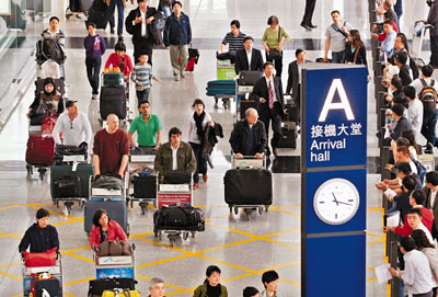 復(fù)活節(jié)長(zhǎng)假期昨日結(jié)束,大量外游市民乘飛機(jī)回港。