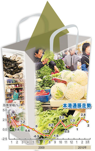 港府發言人表示,3月份的基本消費物價通脹率與1、2月合計的通脹率大致相同,反映整體消費物價的通脹壓力仍然溫和。但發言人指出,隨著經濟復蘇的動力正逐漸增強,未來通脹壓力勢增加;另一方面,持續的產能擴張應有助減輕營商成本的壓力,對紓緩通脹有作用。