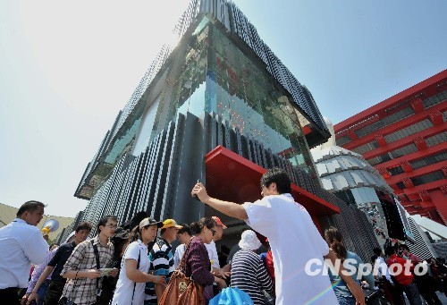 5月1日,上海世博會(huì)開園迎客,香港館前排起人龍。 中新社發(fā) 賈國(guó)榮 攝