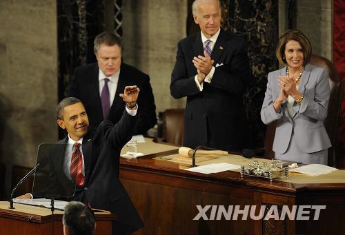 奧巴馬首次發(fā)表國(guó)情咨文 1月27日,在美國(guó)首都華盛頓國(guó)會(huì)山,美國(guó)總統(tǒng)奧巴馬(前)發(fā)表國(guó)情咨文講話。這是奧巴馬就任總統(tǒng)以來(lái)首次發(fā)表國(guó)情咨文。新華社記者 張軍 攝