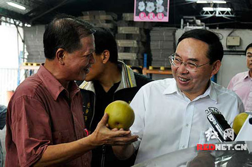 湖南和苗栗的情誼,今后將通過農(nóng)業(yè)經(jīng)濟等領域的合作,讓兩地百姓互惠而得以繼續(xù)。正在臺灣參訪的中共湖南省委副書記梅克保今天走訪苗栗農(nóng)會,他表示歡迎農(nóng)會帶技術來湖南辦農(nóng)場,或通過直銷把苗栗水果帶到湖南。隨行的湖南省連鎖商業(yè)協(xié)會會長胡子敬亦當場表態(tài),將全力以赴,組織湖南超市設立臺灣卓蘭鎮(zhèn)水果專柜。