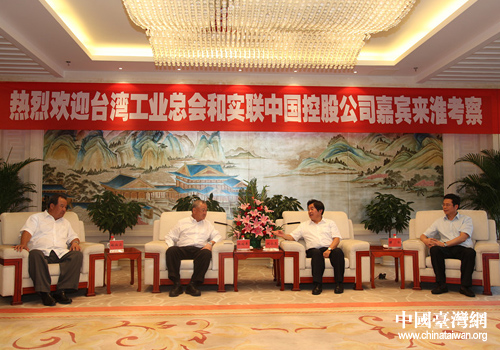 臺灣工業(yè)總會和實聯(lián)中國控股公司嘉賓來淮安考察,圖為會見場面。(圖片來源:淮安市臺辦)