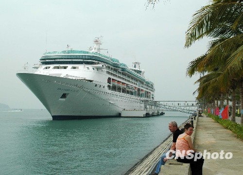 中國國務(wù)院一月四日發(fā)布《關(guān)于推進(jìn)海南國際旅游島建設(shè)發(fā)展的若干意見》,將海南建設(shè)國際旅游島上升為國家戰(zhàn)略。意見提出,積極發(fā)展郵輪產(chǎn)業(yè),建設(shè)郵輪母港,允許境外郵輪公司在海南注冊設(shè)立經(jīng)營性機(jī)構(gòu),開展經(jīng)批準(zhǔn)的國際航線郵輪服務(wù)業(yè)務(wù),做好其停泊海南的服務(wù)工作。圖為2008年美國豪華郵輪“海洋迎風(fēng)號(hào)”?咳齺嗻P凰島郵輪碼頭的資料圖片。 中新社發(fā) 尹海明 攝