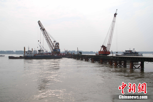 正在建設中的武漢至黃岡城際鐵路控制性工程黃岡公鐵兩用長江大橋