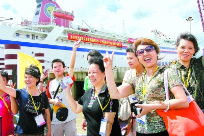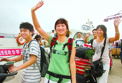 2009年9月16日,福建首批23名在校大學生從馬尾港登船赴臺灣高校學習。記者 林輝 攝