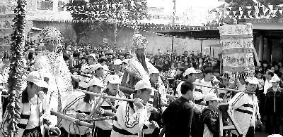 臺灣的“烑神”活動其實是一種偶像戲!盀魃瘛钡涠Y開始時,廟宇抬出模仿開漳先賢神像的紙制偶像,20位青壯年立即隱身于這些偶像中,并抬起偶像隨古樂舞蹈。每座偶像由脫胎紙漆材料做成,高約3米,其腰部裝飾紙制猛獸頭,“獸口”大開。隱身于偶像的青壯年頭部剛好位于猛獸頭處,兩眼通過張開的“獸口”看路。臺灣“烑神”源于唐代的“軍陣舞”,如今,這些古時“烑神”儀式在閩南已很少看到,但它卻在臺灣代代相傳。這是中原古文化在臺灣發揚光大的又一例證。
