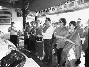 5月29日,臺(tái)灣地區(qū)副領(lǐng)導(dǎo)人蕭萬(wàn)長(zhǎng)的叔叔、81歲高齡的蕭火旺帶領(lǐng)54位蕭氏宗親,到南靖縣金山鎮(zhèn)霞涌村“四美堂”認(rèn)親謁祖。(溫欣 戴俊祥)
