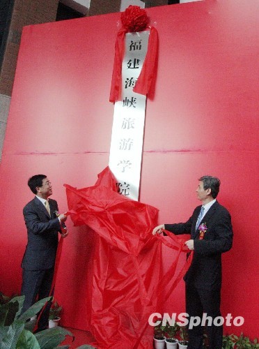 中新社福州6月21日電 (張羽 李玉蓮)21日,福建師范大學與臺灣世新大學合作辦學的福建海峽旅游學院在福建師范大學旗山校區揭牌,將面向大陸和港澳臺地區招生。