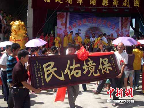 臺灣“三官大帝廟”尋根謁祖團90余人,8日到福建漳浦赤嶺畬族鄉認祖祭祖,進行相關民間民俗文化交流活動。