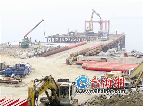 考察團上了水頭碼頭,只見碼頭旁邊的大片空地上正在火熱施工,這兒就是金門招商項目之一水頭港經(jīng)貿(mào)園區(qū)的一部分。