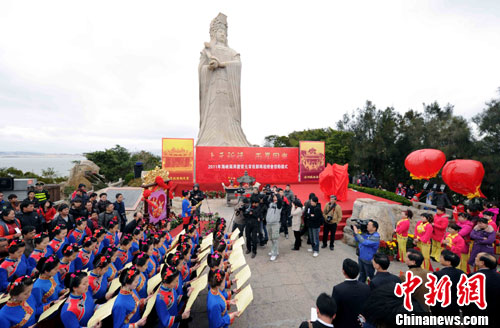 2月11日,農(nóng)歷正月初九。由兩岸聯(lián)辦的“2011年海峽兩岸慶賞元宵佳節(jié)媽祖燈會”在福建莆田湄洲媽祖祖廟、臺灣云林北港朝天宮同時啟動。中新社記者 劉可耕 攝