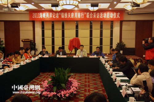 中國臺灣網(wǎng)9月21日成都消息 今天下午,由四川省臺辦主辦的2011海峽兩岸記者“錦繡天府川南行”聯(lián)合采訪活動在四川成都正式拉開帷幕。包括中國臺灣網(wǎng)、中央人民廣播電臺、中新社、《兩岸關(guān)系》雜志,臺灣中時集團《時代周刊》、臺灣新聞報、貓貍電臺、臺灣商報、臺灣網(wǎng)訊報、高雄市新聞記者公會以及香港文匯報在內(nèi)的兩岸三地20家媒體、30余名記者參加了啟動儀式。